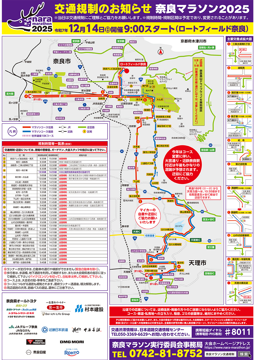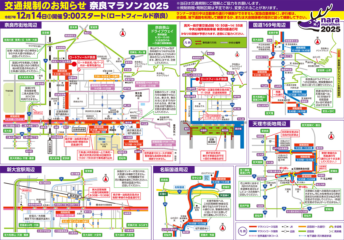 12月14日(日)は「奈良マラソン2025」開催のため、マラソンコース及び周辺道路において交通規制が実施されます。